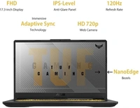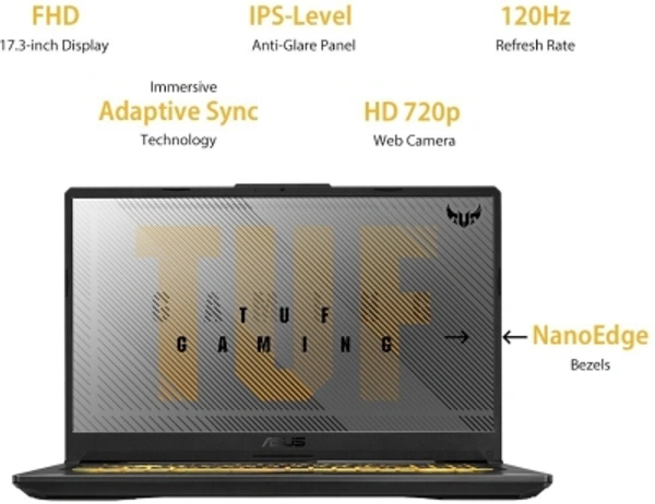 ASUS TUF Gaming A17 Ryzen 7 Octa Core 4800H - (16 GB/1 TB HDD/256 GB SSD/Windows 10 Home/6 GB Graphics/NVIDIA GeForce GTX 1660 Ti/120 Hz) FA706IU-H7220T Gaming LaptopNVIDIA GeForce GTX 1660 Ti17.3 inch Full HD LED Backlit Anti-glare IPS-Level Display (250 nits Brightness, 800:1 Contrast, 45% NTSC, 67% sRGB, 50% Adobe, 170/170 Viewing Angle, 120 Hz Refresh Rate, 16:9 Aspect Ratio)Li