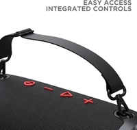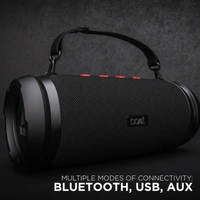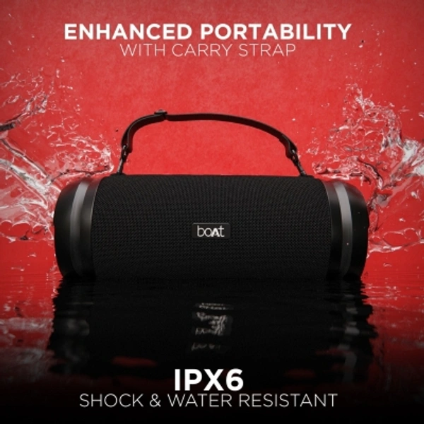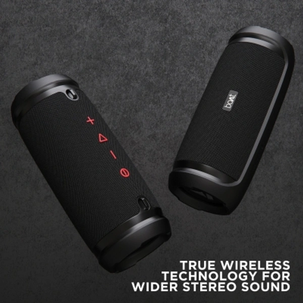 boAt Stone 1500 40 W Bluetooth SpeakerColor: Active Black, RedPower Output(RMS): 40 WCharging time: 4.5 hrsBluetooth Version: 4.2Wireless range: 10 mWireless music streaming via BluetoothIPX6: Water and Shock ResistantTWS Feature: Connect 2 Stone 1500s at onceTwin EQ Modes: Indoor and Outdoor7 Days Replacement Policy, No questions asked.