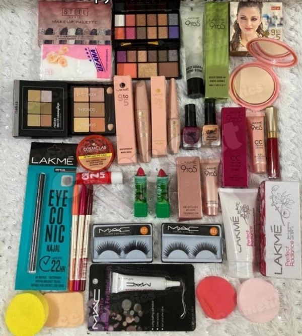 AMA119674* π Eyeshadow randomπ lakme*Original* Concealer palt/ stick 2 in 1 * π Lakme Liner π π Lakme Mascara π π Lakme Kajal π π Lakme Compact π π Lakme CC Cream π π Lakme Primer π π Lakme Foundation π Mac/Huda/ *Original* Eyelash 2Pcs. π Glue π π Matte Lipstick 2Pcs. π Pocket Tissue π π Wipes π π Sindoor π π Nail Paint 2Pcs. π π Lip Liner 3Pcs. π π Lip Balm π π Makeup Sponge 4Pcs. π Dispatch time 4-5 days While open Parcel Make Parcel opening Video