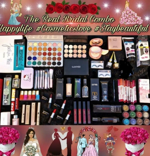 AMA118696* 💕Morphe Jacklyn Eyeshadow Palette💕Professional Base Contour kit 💕Lakme 2in 1 compact 💕Mac 2 Pcs Color Liquid Eyeliner 💕Charcol Mask Pack 💕Foundation Spoon Brush 💕Nail Polish *5 Pcs* 💕NAIL paint remover 💕Hello Kitty 7in1 Brush Set 💕Mac Foundation 💕Mac Gel Primer 💕Mac BB Cream 💕LAKME Sindoor 💕True Lips 12Pcs Lip Liner 💕Iconic Liquid Highlighter 💕Mac 4Pcs Matte Lipstick 💕4Pcs Lakme Liquid Matte LipGloss 💕Mac Fixer 💕Mac 12Pcs Glittersheer Powder 💕Lakme Eyeconic KAJAL 💕Lakme Mascara 💕Lakme Liquid Eyeliner 💕Mac 2Pcs Eyelashes 💕2Pcs Lip Balm *Best Real Bridal Combo* Dispatch time 4-5 days While open Parcel Make Parcel opening Vide