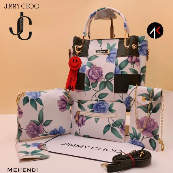AMA120884* *JIMMY CHOO*_5 Pc Combo_ New pattern with Flower and backside full Flower pattern With Keychain ☑️ Good Quality