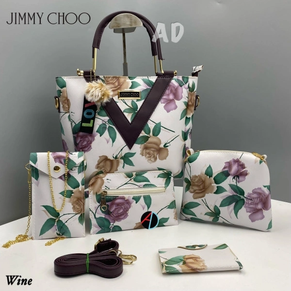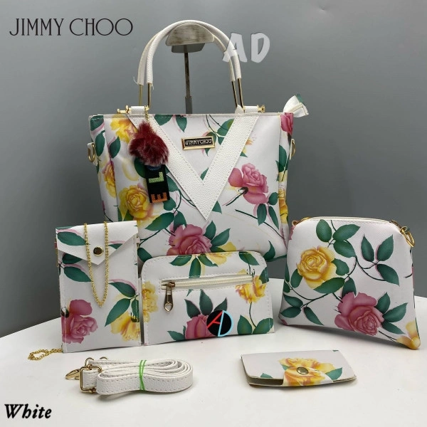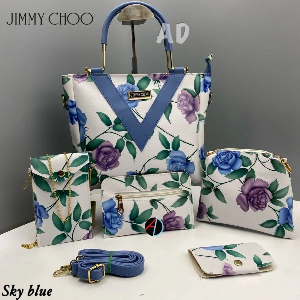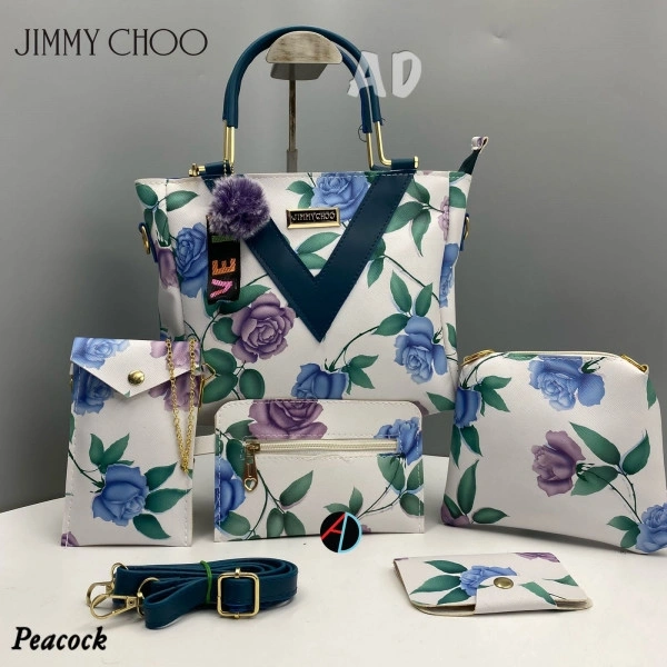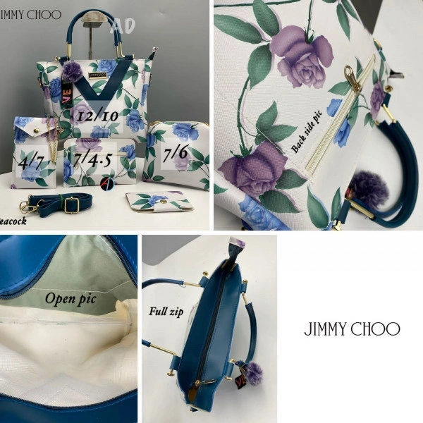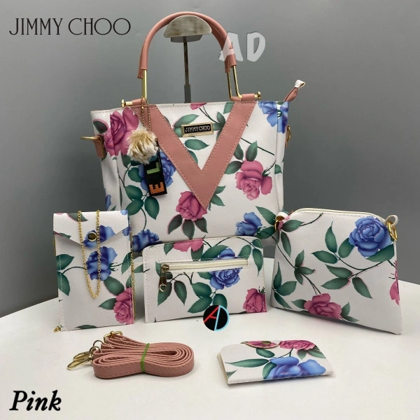 AMA123227* *JIMMY CHOO*_5 Pc Combo_ ⚫️Good Quality ⚫️Long belt ⚫️Full Flower Pattern ⚫️Back side pocket ⚫️full flower design