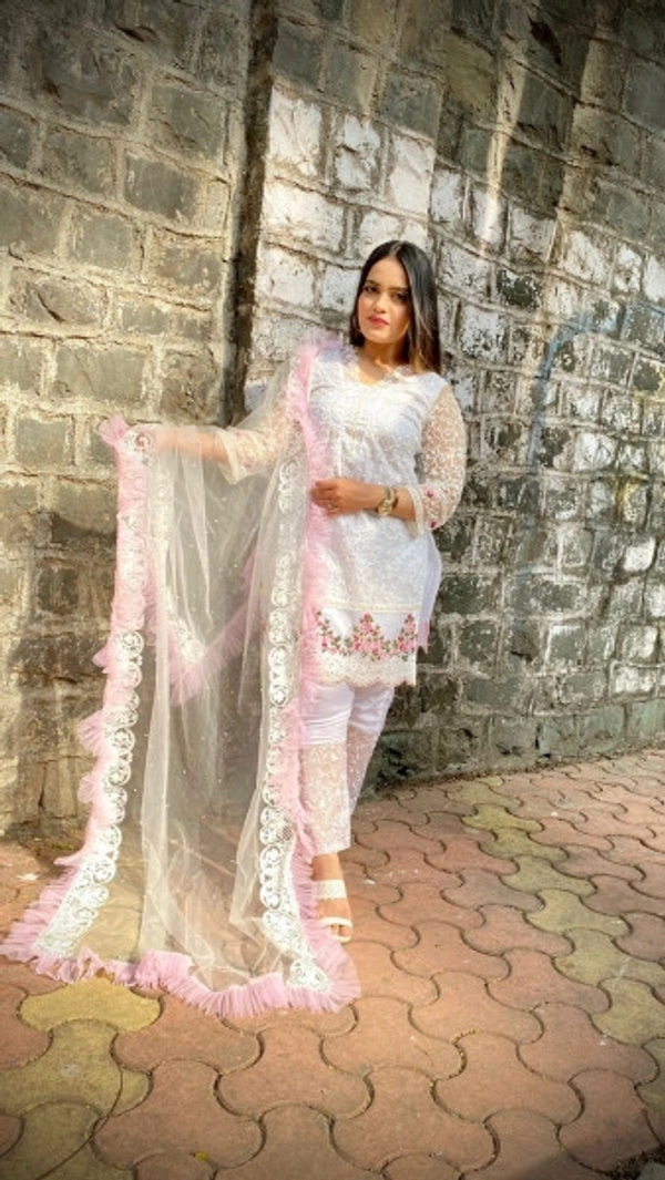 👉 Heavy Pure Quality Material Heavy Net Embroidered Dupatta with Frills work
