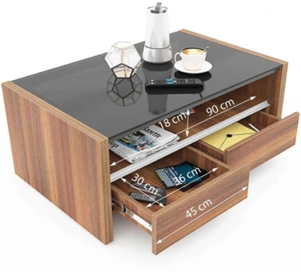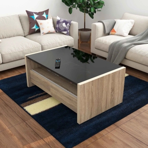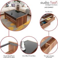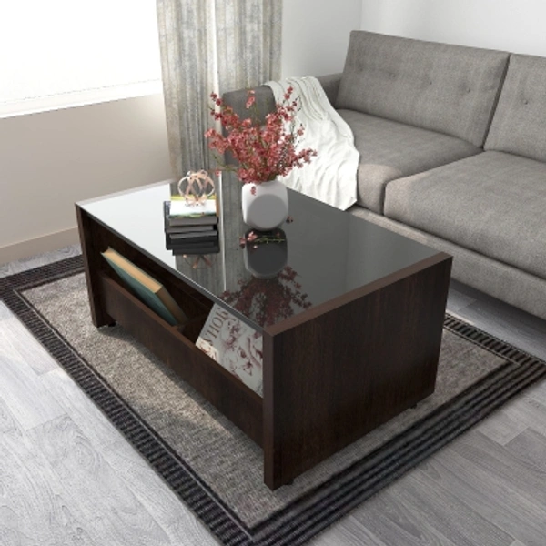 Studio Kook Jazz Compact Glass Coffee TableFinish Color: Junglewood, Sleeperwood, WalnutParticle BoardMetalW x H x D: 98 cm x 45 cm x 60 cm (3 ft 2 in x 1 ft 5 in x 1 ft 11 in)Storage IncludedPre Assembled (Ready to Use)10 Days Replacement Policy, No questions asked.Hurry, Only a few left!
