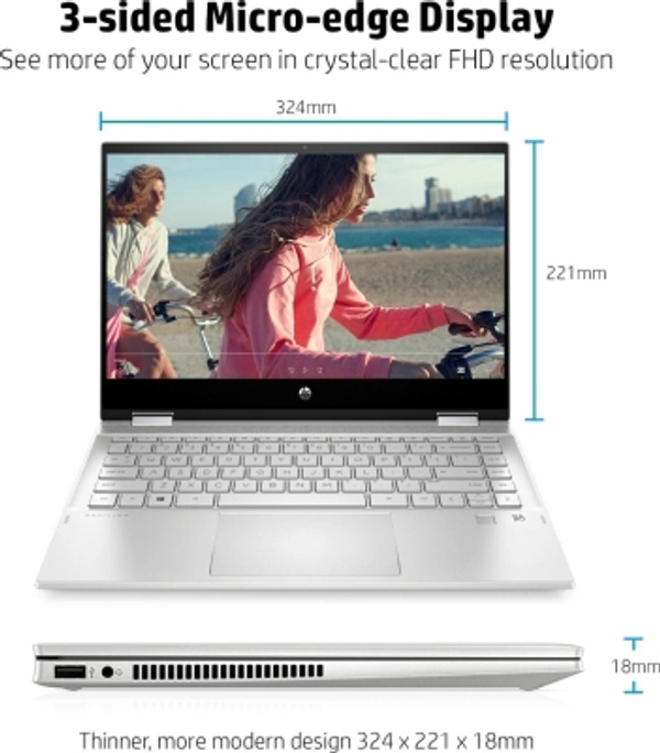 HP Pavilion x360 Core i3 11th Gen - (8 GB/256 GB SSD/Windows 10 Home) 14-dw1036TU 2 in 1 LaptopCarry It Along 2 in 1 Laptop14 inch Full HD LED Backlit IPS Micro-edge Multi-touch Display (250 nits Brightness, 45% NTSC Color Gamut, 157 PPI, 82.47% Screen to Body Ratio)Finger Print Sensor for Faster System AccessLight Laptop without Optical Disk Drive7 Days Replacement Policy, No ques