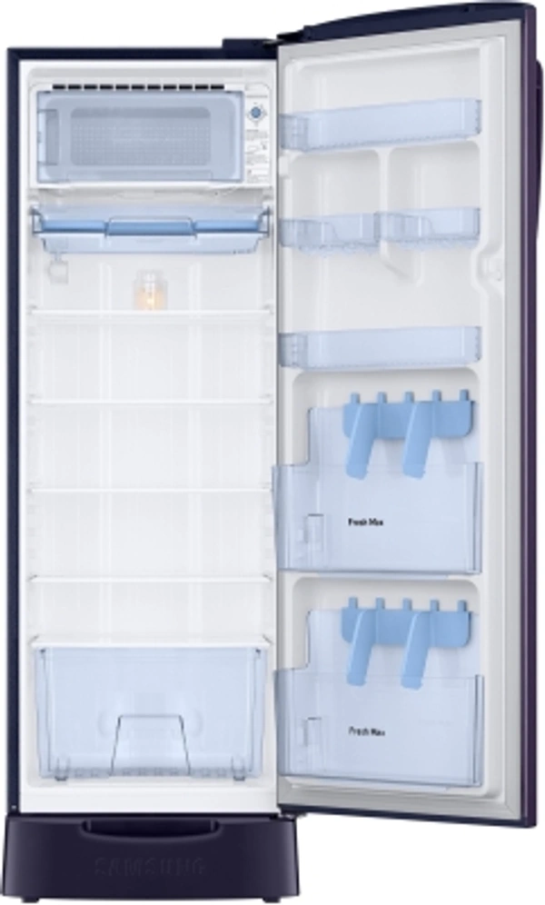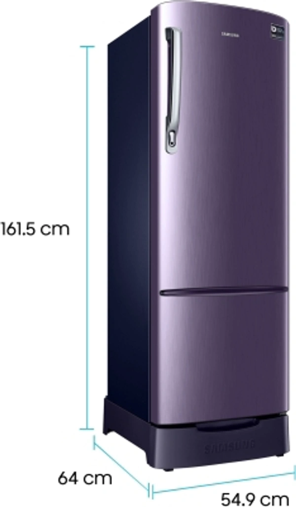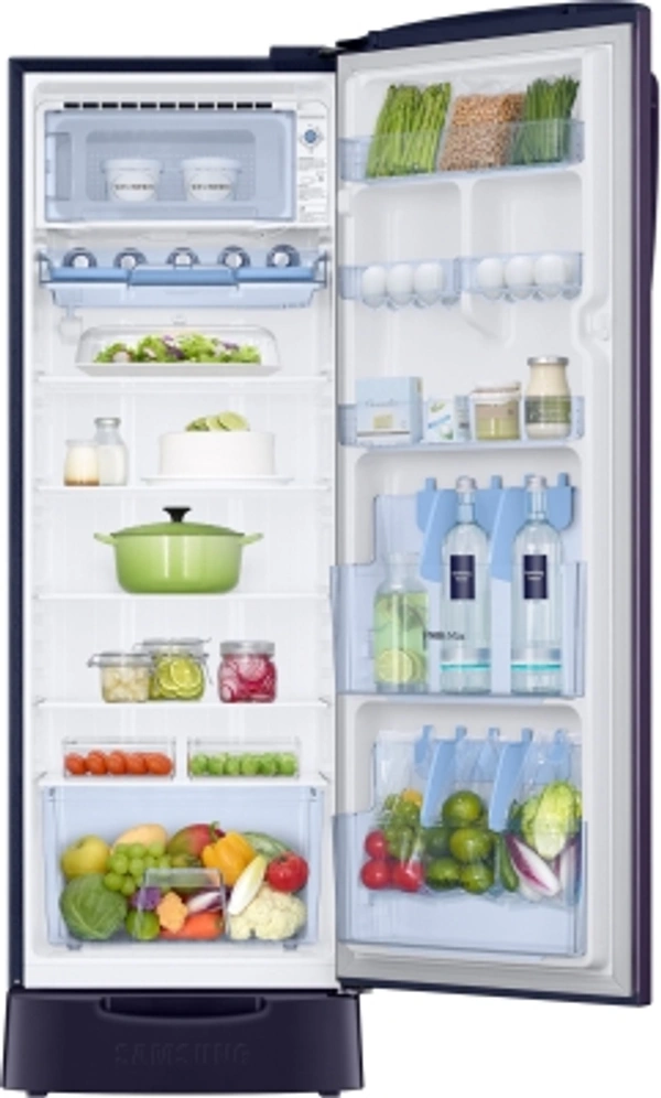 SAMSUNG 255 L Direct Cool Single Door 3 Star Refrigerator with Base DrawerWith Base Drawer: Yes255 L : Good for families of 3-5 membersDigital Inverter Compressor3 Star : For Energy savings up to 35%Direct Cool : Economical, consumes less electricity, requires manual defrostingBase Stand with Drawer : For storing items that don't need cooling (Onion, Potato etc.)10 Days Replacement