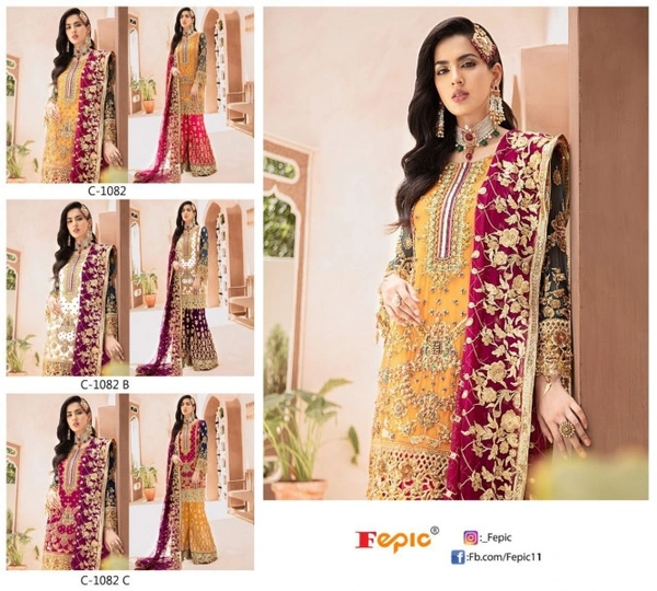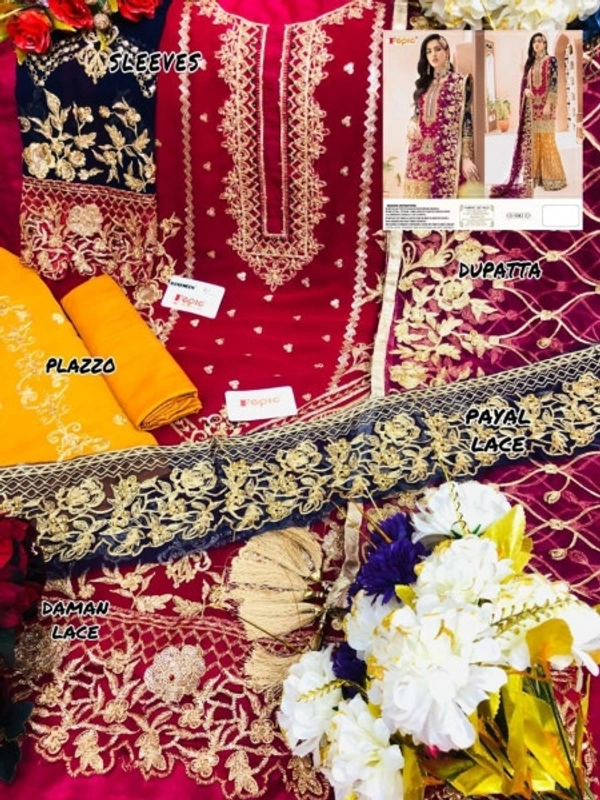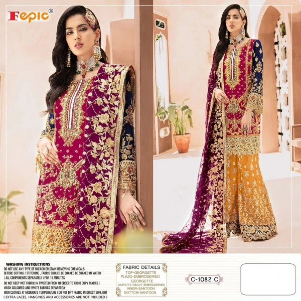 AMA124236* *BRAND NAME*_ :- FEPIC _*CATALOUGE NAME*_ :- ROSEMEEN _*D NO*_ :- C - 1082 *FABRICS :-* _*Top*_ :- HEAVY GEORGETTE EMBROIDERY _*Dupatta*_ :- NETEMBROIDERY _*Bottom*_ :- PLAZO GEORGETTE EMBROIDERY + SANTOON _*Inner*_ :- SANTOON BOOK FAST...........!!!!!!!!!!! *READY TO SHIP......!!!!!!!!*
