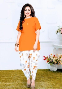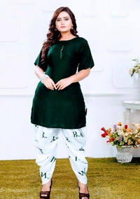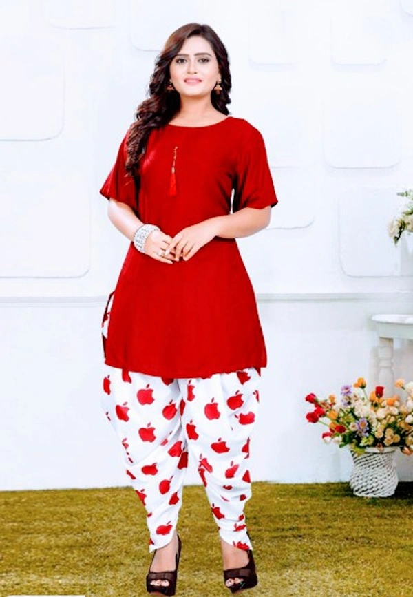 *Catalog Name:* Unique Solid Rayon Kurti Patiala Sets *Details:* Description: 1 Piece of Top, 1 Piece of Patiala Fabric; Top: Rayon, Patiala: Crepe Length; Top: 30 In, Patiala : 40 In Size: Top: Bust (In Inches): M-38, L-40, XL-42, XXL-44, Patiala : Waist (In Inches): Free Size Up to 40 Type: Stitched Work; Top: Solid, Patiala : Printed Designs(डिज़ाइन): 5 💥 *FREE Shipping* (फ्री शिपिंग) 💥 *FREE COD* (फ्री केश ऑन डिलीवरी) 💥 *FREE Return & 100% Refund* (फ्री रिटर्न और 100% रिफंड) 🚚 *Delivery*: Within 7 days (डिलीवरी 7 दिनों में)