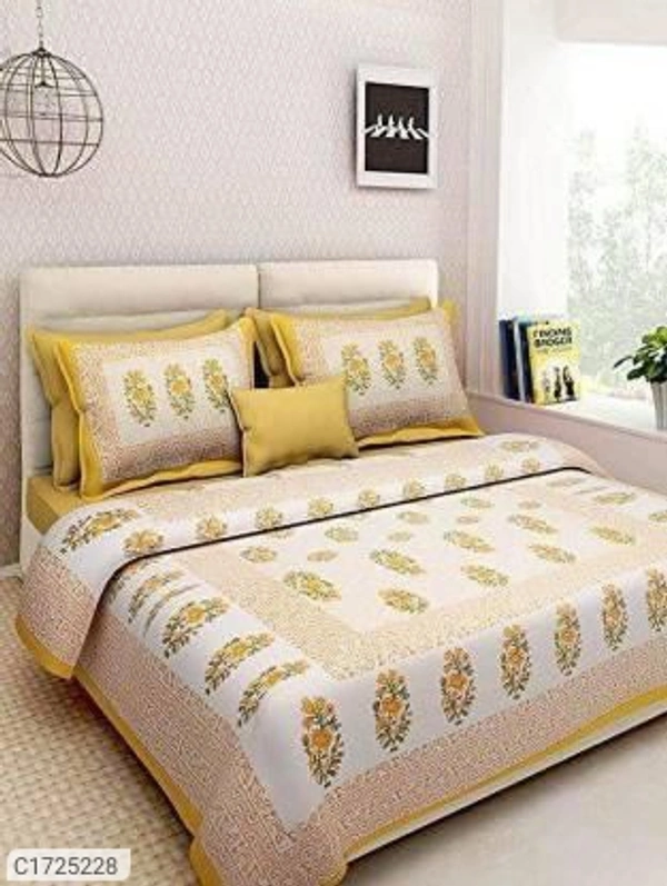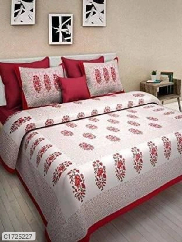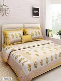 *Catalog Name:* Comfort Cotton Printed Double Bedsheets Vol-3*Details:*Package Contains: It has 1 Piece of Kaam Jaal Printed Double Bedsheets With 2 Pillow CoversFabric: CottonProduct Size : Bedsheet(L X W In Inch): 90 X 100, Pillow Cover (L X W In Inch): 17 X 27Work: PrintedThread Count: 254Product Weight: 800Package Dimension (L X B X H in cm): 26 x 23 X 8Designs(डिज़ाइन): 3💥 *F