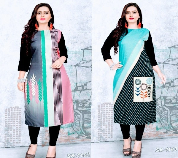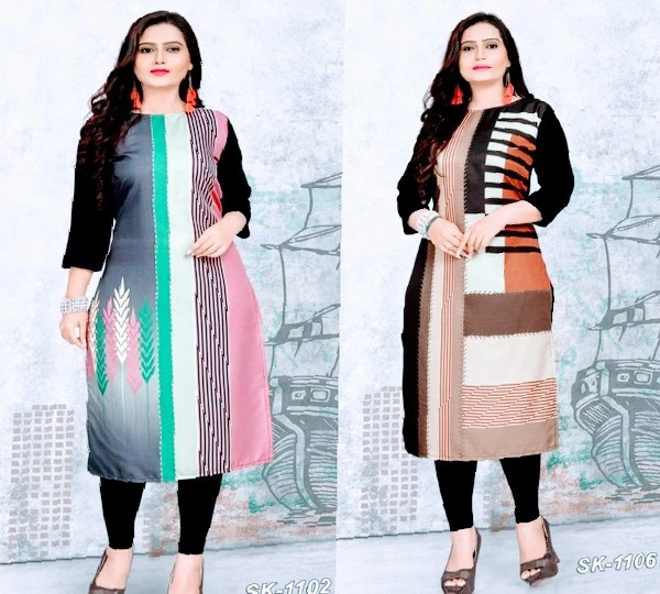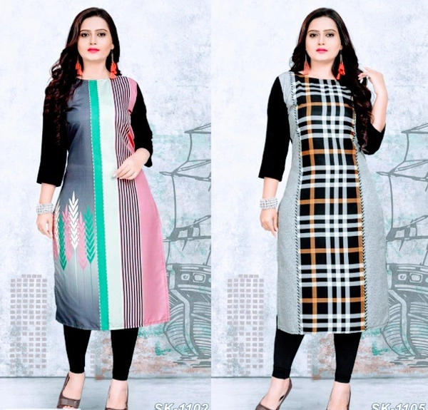 Digital Printed American Crepe Kurtyd Combo Of 2