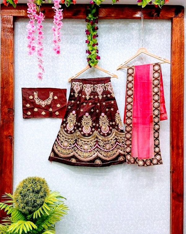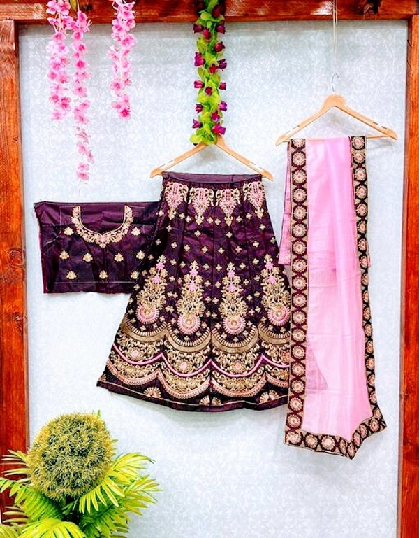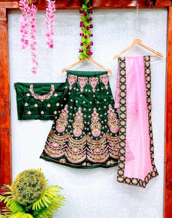 Catalog Name:*Princess Trendy Kids Girls Lehanga Cholis* Top Fabric: Satin Lehenga Fabric: Satin Dupatta Fabric: Net Sleeve Length: Short Sleeves Top Pattern: Embroidered Lehenga Pattern: Embroidered Dupatta Pattern: Embroidered Stitch Type: Semi-Stitched Multipack: 1 Sizes: 4-5 Years (Lehenga Waist Size: 26 in, Lehenga Length Size: 26 in, Duppatta Length Size: 1.8 in) 5-6 Years (Lehenga Waist Size: 26 in, Lehenga Length Size: 26 in, Duppatta Length Size: 1.8 in) 6-7 Years (Lehenga Waist Size: 26 in, Lehenga Length Size: 26 in, Duppatta Length Size: 1.8 in) 7-8 Years (Lehenga Waist Size: 30 in, Lehenga Length Size: 30 in, Duppatta Length Size: 1.8 in) 8-9 Years (Lehenga Waist Size: 30 in, Lehenga Length Size: 30 in, Duppatta Length Size: 1.8 in) 9-10 Years (Lehenga Waist Size: 30 in, Lehenga Length Size: 30 in, Duppatta Length Size: 1.8 in) Easy Returns Available In Case Of Any Issue