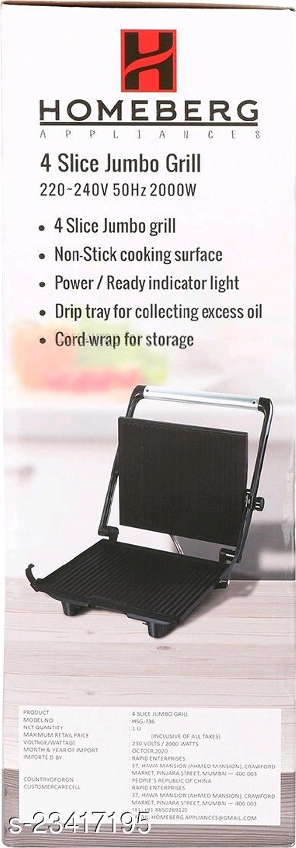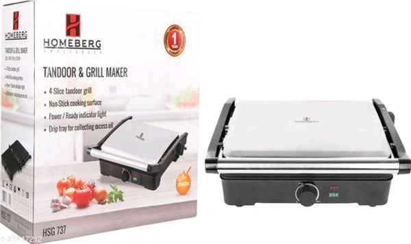 Product Name: HOMEBERG Non-Stick Cooking Surface 4 Slice Tandoor & Grill Maker 2000W -HSG737