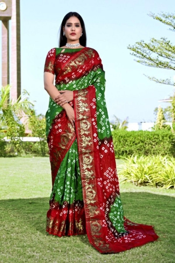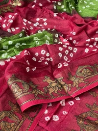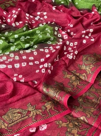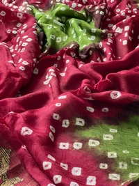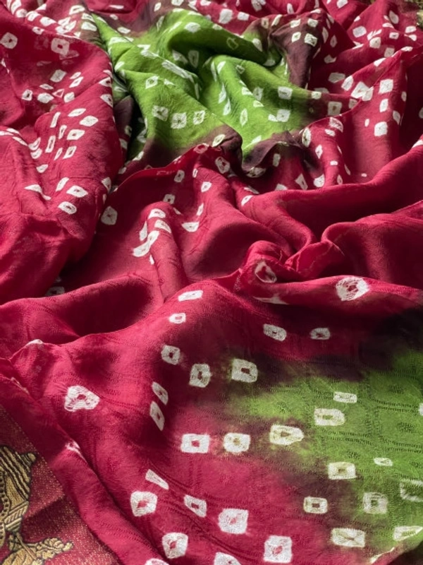 *#119416* *🥰Hit Design Now Present In Viscose + Jacquard Palkhi Bandhej Bandhani Saree🥰* *💕Design :- Palkhi Maroon♥️Mehndi💚* *✋Made By Three Diffrent Places (Fabric-Surat, Bandhej-Jamnapur, Dying-Jetpur)✋* ✌️Fabric:- Artsilk With Jacquard Waving ✌️Awesome Heavy Jacquard Waving Border ✌️Work:- Hand Bandhej + Hand Dying ✌️Running Blouse ✌️100% Orignal Bandhej Bandhani Saree *❤️Best Rates & Original Products Always❤️* *✅Stock Ready✅* *🚢Ready To Ship🚢* *🛍bOOk yOur Orders nOw🛍* *Price :1155.00*