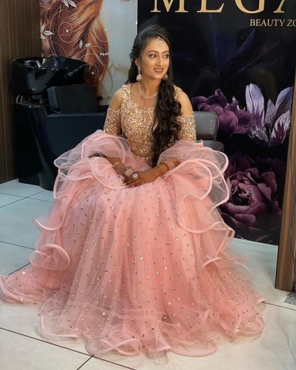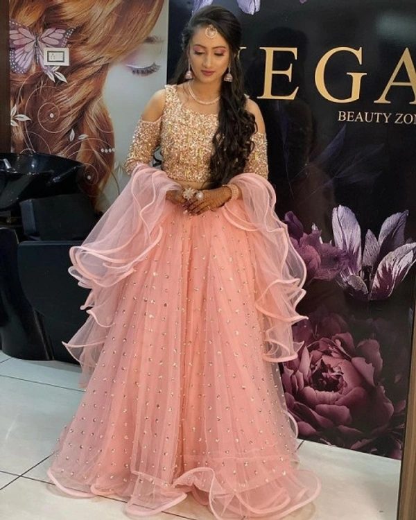 *DUPATTA* :- Full Heavy georgette With 4 Side Fency Lace + Mirror Work